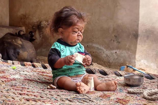 Πλέον, είναι 23 ετών και δεν μπορεί να πάει μόνος του πουθενά. Τον κουβαλά σαν μωρό ο θείος του, Lakhwinder Kaur.