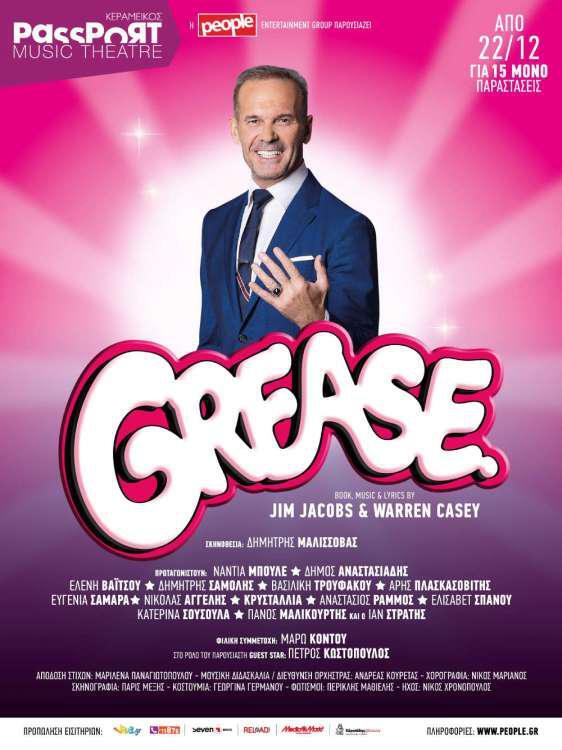 Το Grease, το θεατρικό hit που έγραψε ιστορία στο Μπρόντγουεϊ ως ένα από τα μακροβιότερα έργα, είναι ένα μιούζικαλ – χρονομηχανή, μία παράσταση για όλη την οικογένεια, μια βόλτα στα πολύχρωμα, λαμπερά 50ς μέσα από rock ‘n’ roll μελωδίες και ρομαντικά τραγούδια.