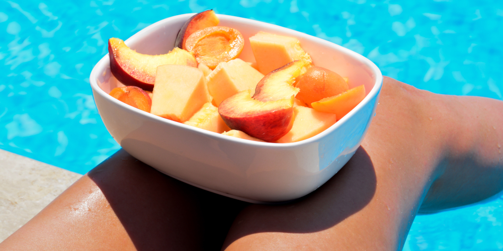 ΒΡΑΔΥ: Φρουτοσαλάτα με γιαούρτι (2 βερίκοκα, 4 φράουλες, 2 φέτες ανανά, γιαούρτι με κανέλα και 1 κ.γλ. μέλι)