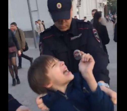 Το βίντεο της σύλληψης, που τραβήχθηκε με κινητό τηλέφωνο, μεταδόθηκε από πολλά ρωσικά τηλεοπτικά κανάλια και δείχνει το παιδί να φωνάζει “Σώστε με!” ενώ πολλοί αστυνομικοί το μεταφέρουν δια της βίας σε ένα περιπολικό.