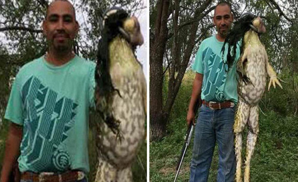 Ο Μάρκους Ρράνγκελ από την πόλη Μπάισβιλ, ποζάρει στην κάμερα με τον πελώριο βάτραχο! Ο ίδιος ανέβασε τις φωτογραφίες του στην σελίδα του επίσημου κυνηγητικού συλλλόγου του Τέξας για να δείξει ότι υπάρχουν τόσο μεγάλοι βάτραχοι.