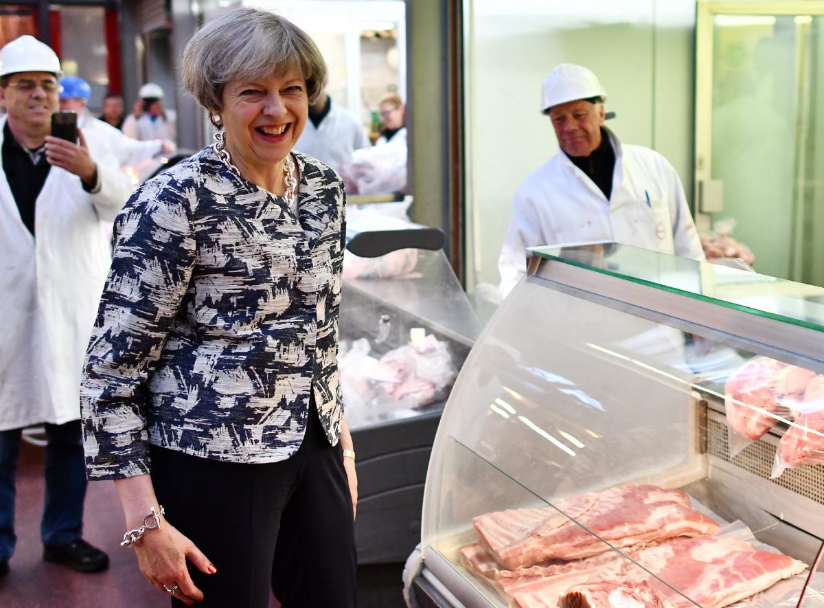 Την τελευταία μέρα της προεκλογικής εκστρατείας, η Τερέζα Μέι αποδοκιμάστηκε έντονα από κρεοπώλες που την υποδέχτηκαν «ψυχρά».