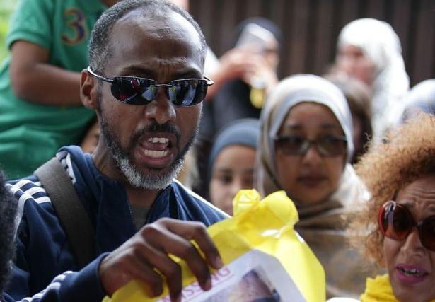 Όπως ανέφερε η Mirror, ο άντρας κρατούσε ένα πανό που είχε πάνω του φωτογραφίες των παιδιών της οικογένειας Χασίμ, που αγνοούνται από την πυρκαγιά στον πύργο Γκρένφελ.