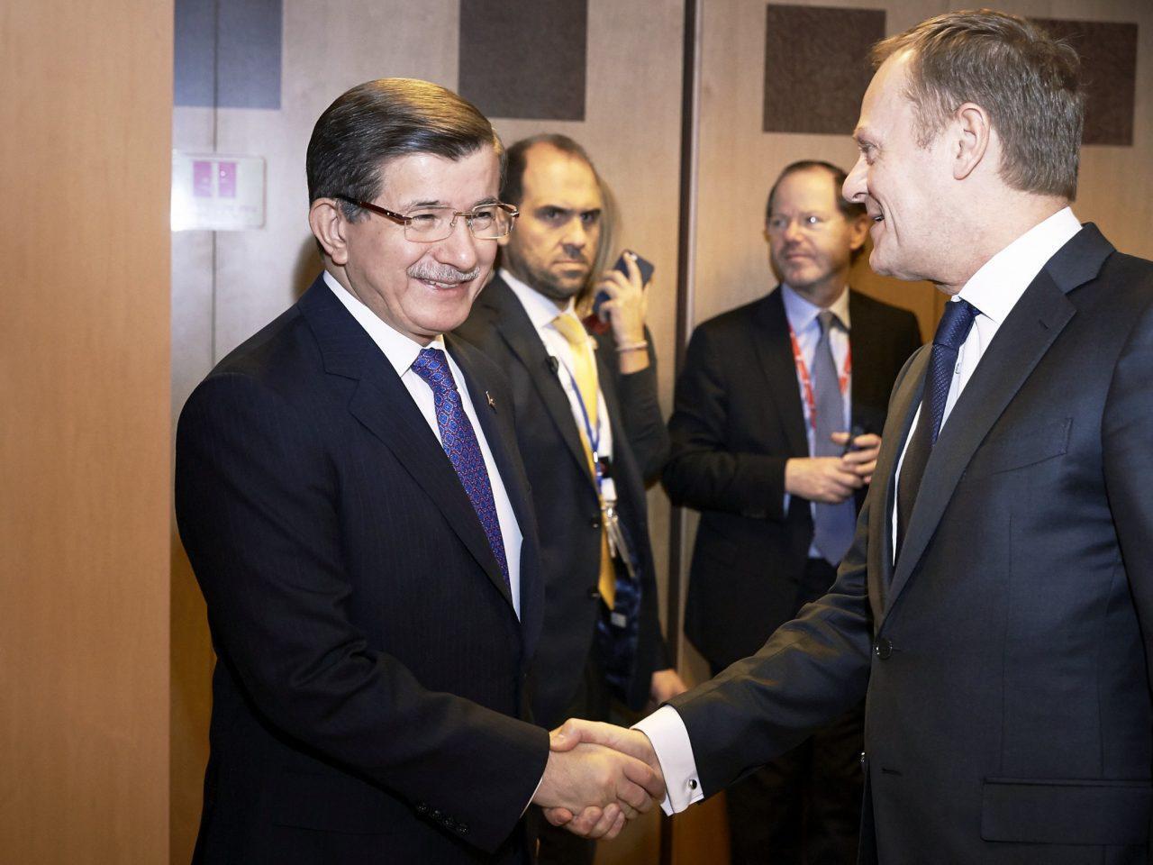 Απέναντι στον Πρόεδρο του Ευρωπαϊκού Συμβουλίου Ντόναλντ Τουσκ, τον πρώτο αντιπρόεδρο της Ευρωπαϊκής Επιτροπής Φρανς Τίμερμανς και την Καγκελάριο της Γερμανίας Άνγκελα Μέρκελ – της πλέον πρόθυμης χώρας της ΕΕ να δεχθεί πρόσφυγες από την Τουρκία- ο πρωθυπουργός της Τουρκίας, επανέλαβε πως «το θέμα της κατάργησης της βίζας είναι ζωτικής σημασίας για την Τουρκία».