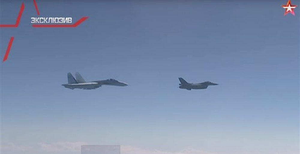 Στο βίντεο, που μαγνητοσκοπήθηκε από το αεροσκάφος του Ρώσου υπουργού το ρωσικό μαχητικό προσεγγίζει το F-16 σε απόσταση αναπνοής για τα δεδομένα της αεροπλοΐας.