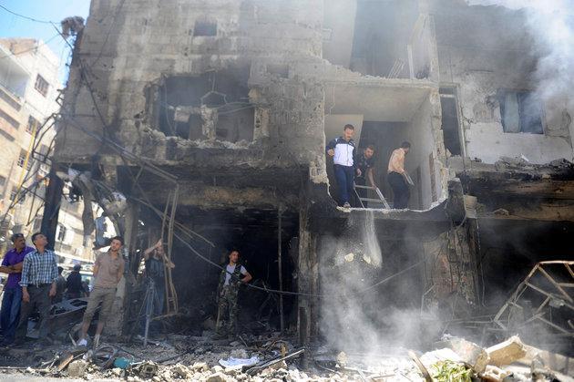 Τα κρατικά μέσα ενημέρωσης της Συρίας πρόβαλαν εικόνες από την περιοχή όπου διακρίνονται οι τεράστιες ζημιές που έχουν προκληθεί σε μια πολυσύχναστη λαϊκή αγορά.