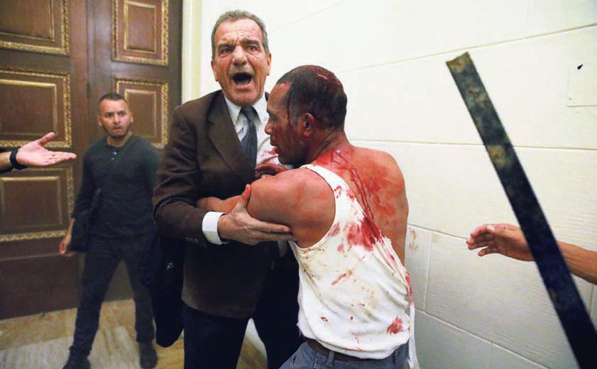 Οι φωτογραφίες που έκαναν χθες το γύρο του κόσμου δείχνουν ανθρώπους να κείτονται στο έδαφος και να αιμορραγούν στο κεφάλι, με τους αιματοβαμμένους τοίχους τους κτιρίου να μαρτυρούν τις βιαιότητες.