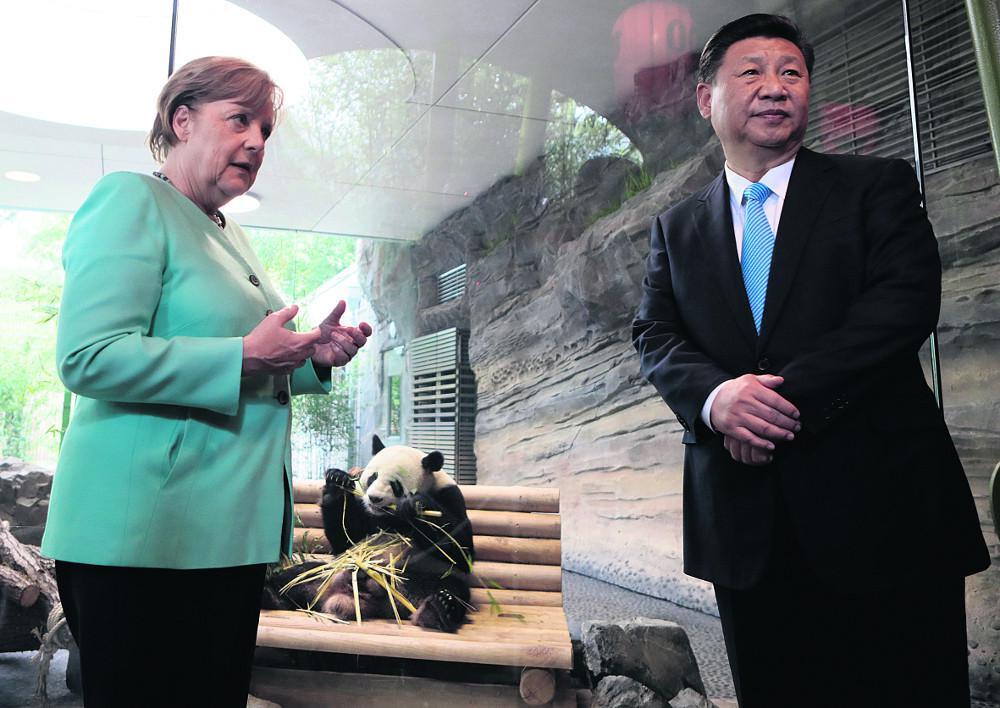 Στη συνάντηση με τον Κινέζο πρόεδρο, η καγκελάριος προσπάθησε να αμβλύνει τις εντυπώσεις από τις πρόσφατες δηλώσεις της περί του κινεζικού επεκτατισμού στην Ευρώπη. Είπε ότι μπορεί να διευρυνθεί η συνεργασία των δύο χωρών και να υπάρξει «αμοιβαίο άνοιγμα των αγορών». Την ώρα που η κ. Μέρκελ μιλούσε για τις καλοδεχούμενες κινεζικές επενδύσεις, υπογράφονταν «βαριές» συμφωνίες για πώληση 140 αεροσκαφών στο Πεκίνο από την Airbus (ένα τμήμα της εδρεύει στο Αμβούργο), ηλεκτρικών αυτοκινήτων από την Daimler και για συνεργασία σε άλλους τομείς. «Θα κάνουμε μια νέα αρχή στις γερμανοκινεζικές σχέσεις», δήλωσε και ο πρόεδρος Σι, ο οποίος με τη συνοδεία της καγκελαρίου επισκέφθηκε το ζωολογικό κήπο του Βερολίνου για να θαυμάσει το ένα από τα δύο μεγάλα κινεζικά Πάντα (η «διπλωματία των Πάντα» παραμένει ενεργή από την Κίνα).