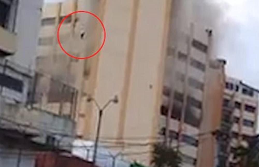 Κάποια στιγμή η κάμερα εστιάζει στα αριστερά του κτηρίου και καταγράφει τη στιγμή της πτώσης ενός ανθρώπου στο κενό. Όπως έγινε γνωστό αργότερα ο εν λόγω άνθρωπος τραυματίστηκε σοβαρά αλλά δεν έχασε τη ζωή του. Εκπρόσωπος της υπηρεσίας πολιτικής προστασίας δήλωσε ότι αντίστοιχα άλματα στο κενό έγιναν και από ανθρώπους που βρίσκονταν στον πέμπτο και τον έκτο όροφο του κτηρίου.