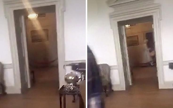 Όταν ωστόσο έριξαν μία πιο προσεκτική ματιά στο βίντεο που είχαν ποστάρει διέκριναν τη μορφή μία ηλικιωμένης γυναίκας να περνά ξαφνικά από την καμάρα μιας πόρτας, κρατώντας κάτι που δείχνει να είναι ένα καλάθι. Η γυναικεία μορφή προξένησε τρόμο στο νεαρό ζευγάρι, το οποίο υποστηρίζει πως έπιασε το φάντασμα μίας οικιακής βοηθού, η οποία ζούσε στο παλάτι και πέθανε σε φωτιά το 1798.