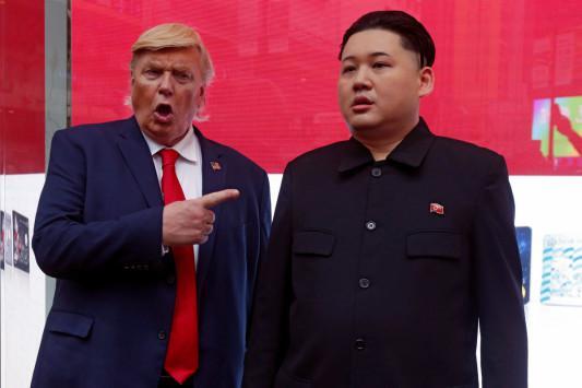 Η λεζάντα γράφει «Διόσκουροι» ενώ το δημοσίευμα σχολιάζει την ανταλλαγή φραστικών απειλών πολέμου μεταξύ των ΗΠΑ και της Βόρειας Κορέας.