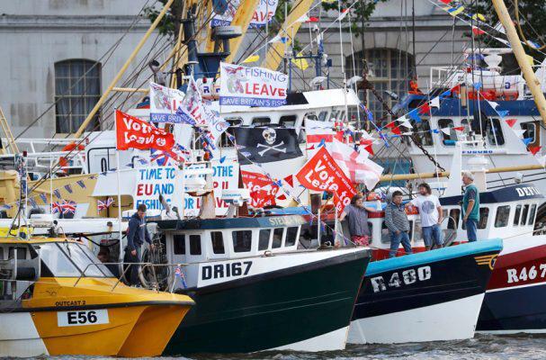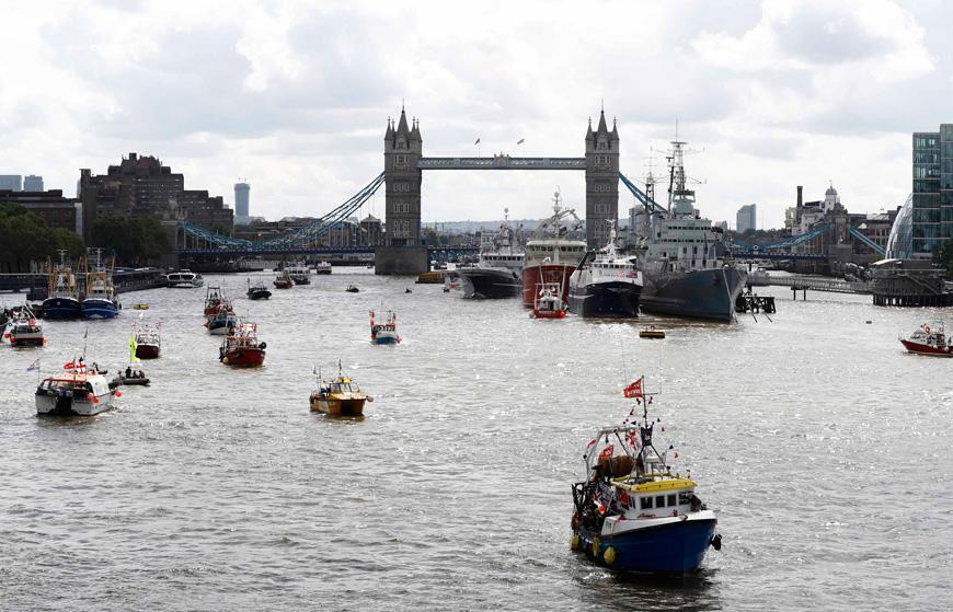 Σε ένα από τα αλιευτικά σκάφη επέβαινε ο Νάιτζελ Φάρατζ, ο ηγέτης του ξενοφοβικού Ukip, για να επισημάνει τη ζημιά που σημαίνει για την βρετανική αλιευτική βιομηχανία η επιβολή των ευρωπαϊκών ποσοστώσεων.