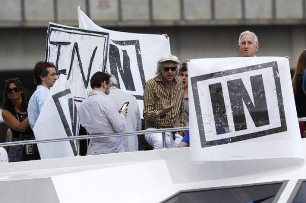 Η ένταση έχει χτυπήσει κόκκινο καθώς υποστηρικτές του Brexit και του Bremain πλημμύρισαν τον Τάμεση με κάθε είδους πλωτό μέσο και αντιευρωπαϊκά συνθήματα.