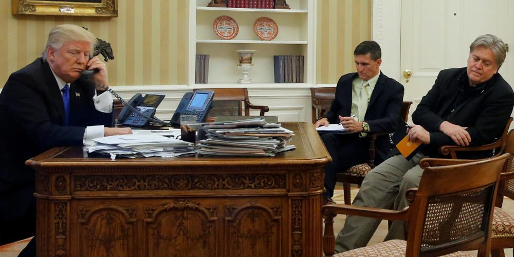 Πιεζόμενος από τους μετριοπαθείς Ρεπουμπλικανούς να απομακρύνει τον Μπάνον, ο Τραμπ απέφυγε την Τρίτη να τον υποστηρίξει δημοσίως. “Θα δούμε τι θα γίνει με τον κ. Μπάνον”, είπε όταν ρωτήθηκε από δημοσιογράφους στον Πύργο Τραμπ στη Νέα Υόρκη.