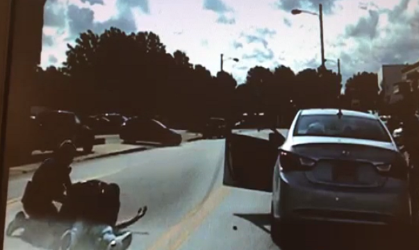 Στο βίντεο φαίνεται και η φίλη του θύματος, να βγαίνει από το αμάξι με τα χέρια ψηλά και να παρακαλεί να σταματήσουν, ενώ φωνάζει ότι είναι άοπλος.