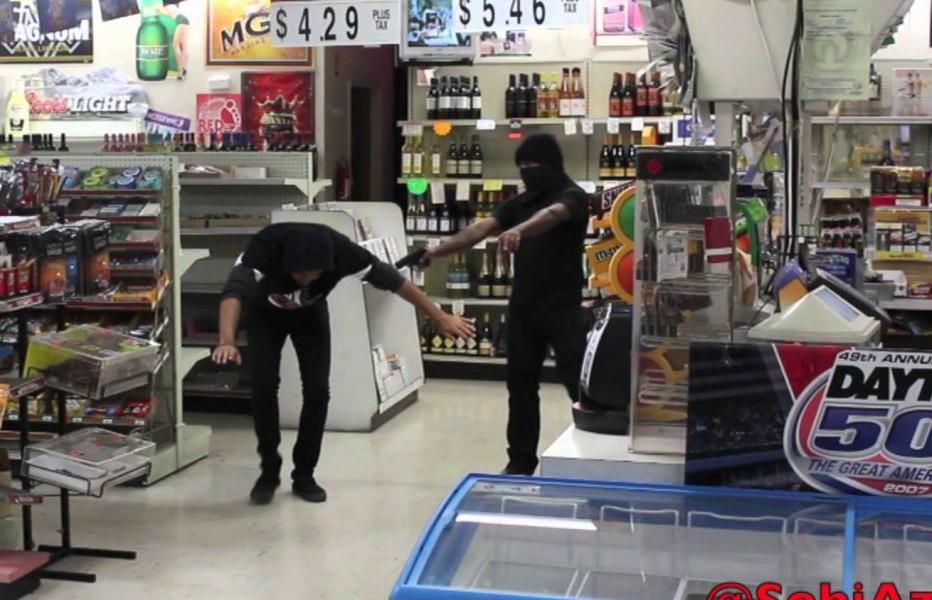 Δείτε όλο το επικό σκηνικό, με τον υπάλληλο στο τέλος να ακινητοποιεί τον έναν ληστή.