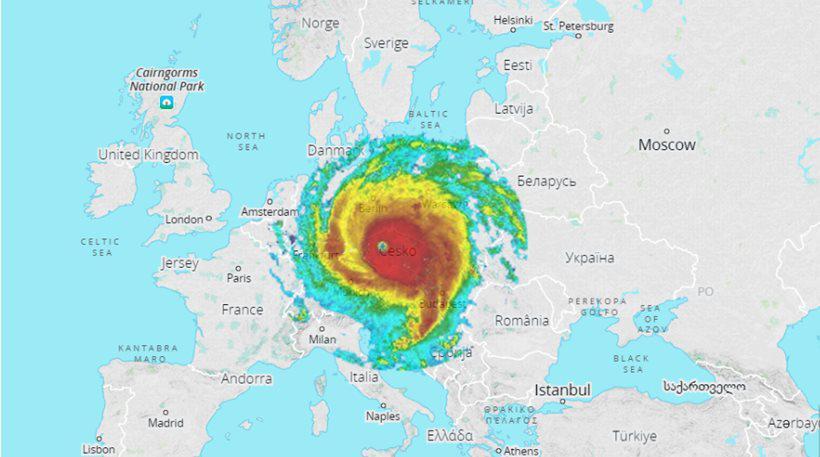 Όπως φαίνεται στον χάρτη, ο ίδιος τυφώνας, αν εκδηλωνόταν στην ευρωπαϊκή ήπειρο, θα καταλάμβανε μία έκταση όσο η Κεντρική Ευρώπη και σίγουραμ, μεγαλύτερη από την Ελλάδα και την Ιταλία μαζί!