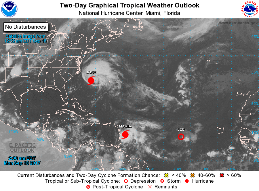 Το πρωί της Κυριακής, η «Μαρία» βρισκόταν 460 μίλια νοτιοανατολικά από τις Μικρές Αντίλλες, με κατεύθυνση προς την Καραϊβική, πνέοντας με ταχύτητα 15 μιλίων ανά ώρα.