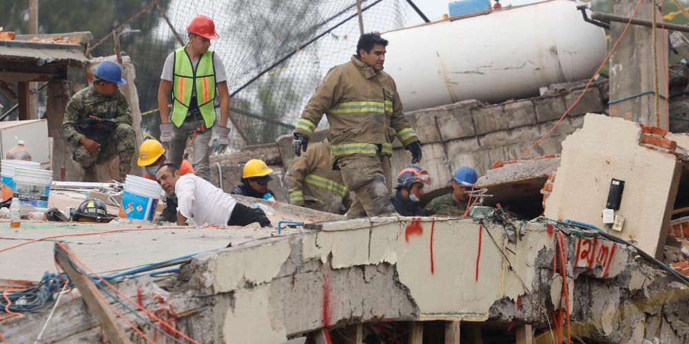 Σε όλη την Πόλη του Μεξικού, τα μέλη των σωστικών συνεργείων βοηθούν εθελοντές και πολίτες επιστρατεύοντας σκυλιά, κάμερες, ανιχνευτές κίνησης και θερμότητας για τον εντοπισμό ανθρώπων που μπορεί να είναι ακόμη ζωντανοί.