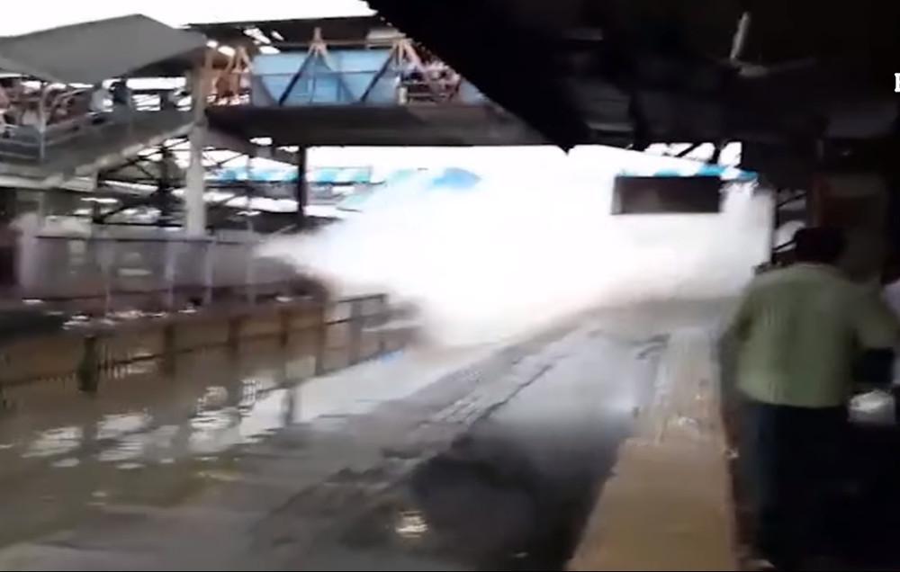 Όπως φαίνεται και στο βίντεο, με το πέρασμα του συρμού, το νερό πετάχτηκε και έκανε μούσκεμα όλους τους ανθρώπους στην αποβάθρα.
