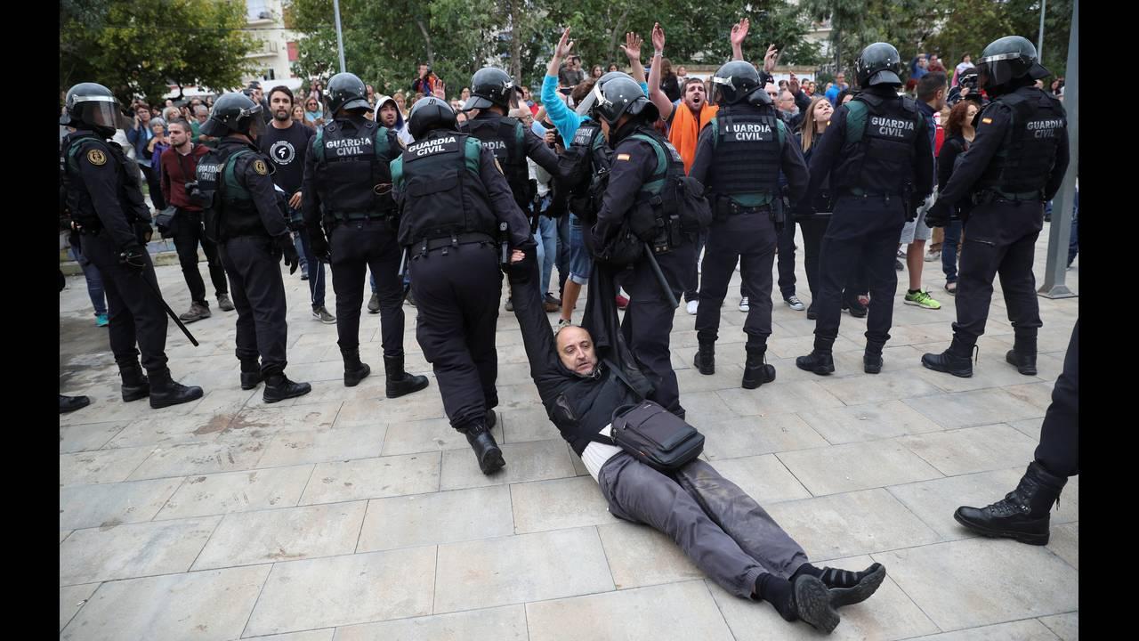 Οι κάλπες στην Καταλονία θα κλείσουν στις 21:00 (ώρα Ελλάδας) και οι εικόνες που κάνουν από το πρωί της Κυριακής το γύρο του κόσμου συγκλονίσουν και εξοργίζουν. Αστυνομικοί με γκλοπ χτυπούν όποιον θέλει να ψηφίσει. Ανάμεσά τους γυναίκες και ηλικιωμένοι.