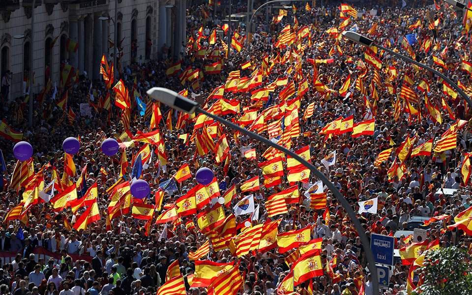«Ζήτω η Καταλονία! Ζήτω η Ισπανία!» φώναζαν οι διαδηλωτές που κρατούσαν σημαίες της Ισπανίας, ένα θέαμα πρωτόγνωρο στην χώρα μετά το τέλος του καθεστώτος του Φρανθίσκο Φράνκο.