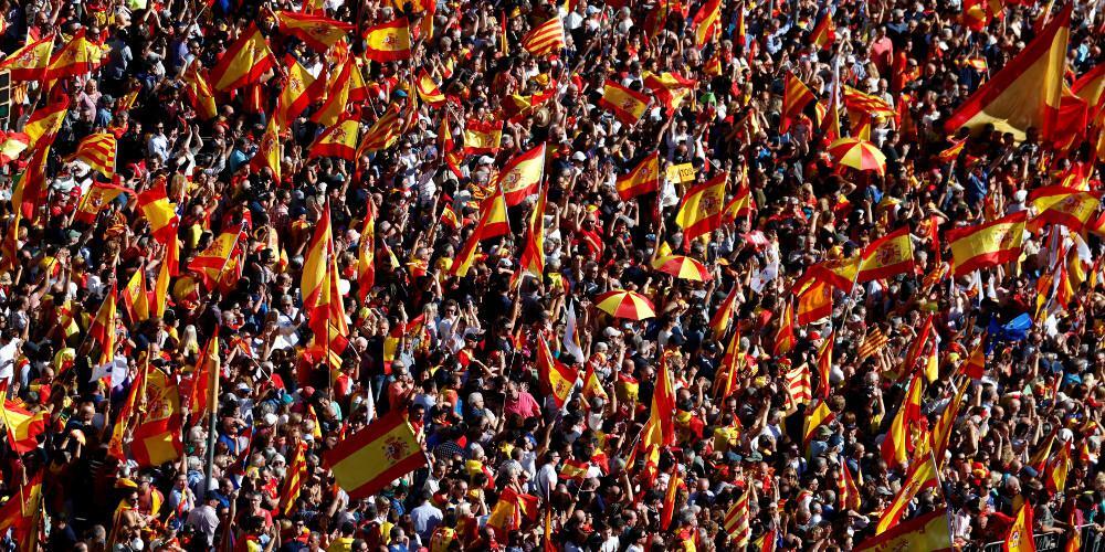 Οι διαδηλωτές κατέκλυσαν μία από τις εμβληματικές λεωφόρους της Βαρκελόνης, την Πασέιγκ ντε Γκράσια, η οποία γέμισε από ισπανικές σημαίες και όπου ακουγόταν το σύνθημα «Πουτζντεμόν, στη φυλακή», μια αναφορά στον αυτονομιστή καταλανό ηγέτη τον οποίο απέπεμψε την Παρασκευή η Μαδρίτη.