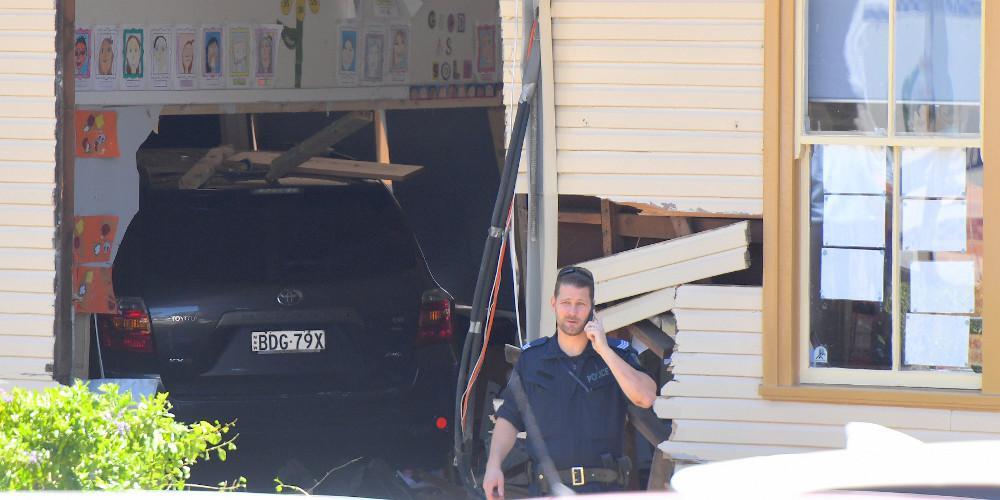 Εικόνες από τα τοπικά μέσα ενημέρωσης έδειχναν το αυτοκίνητο να έχει ανοίξει τρύπα στον τοίχο και να έχει ακινητοποιηθεί μέσα στην αίθουσα διδασκαλίας.