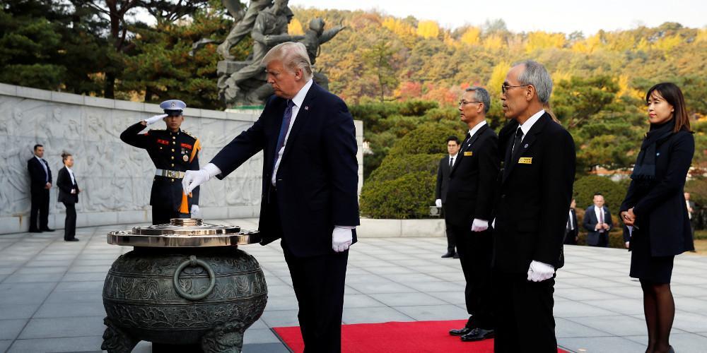 Το ζεύγος Τραμπ έφθασε χθες την πρωτεύουσα της Νότιας Κορέας, άλλη μια σημαντική στάση μετά το Τόκιο, στη μαραθώνια περιοδεία του στην Ασία. Στην κορυφή της πολιτικής ατζέντας των συζητήσεων βρίσκεται το πυρηνικό πρόγραμμα και η προκλητική στάση της Βόρειας Κορέας.