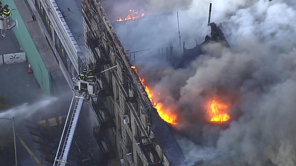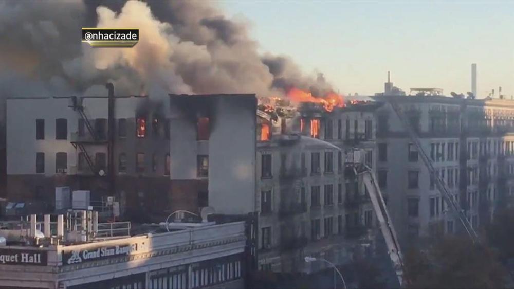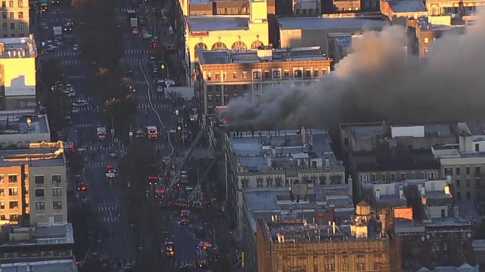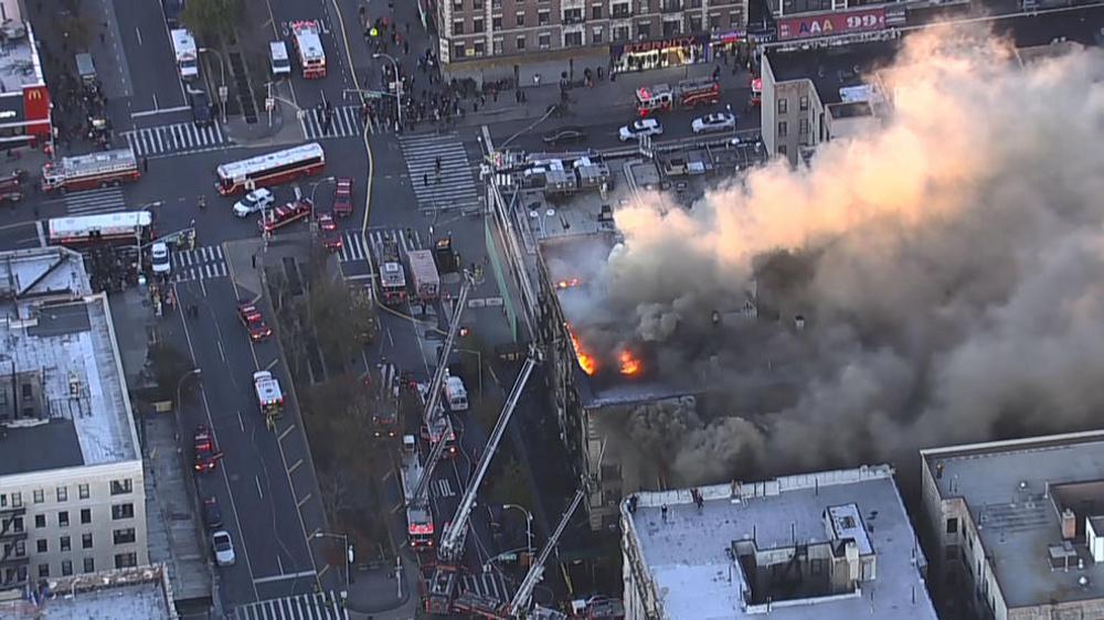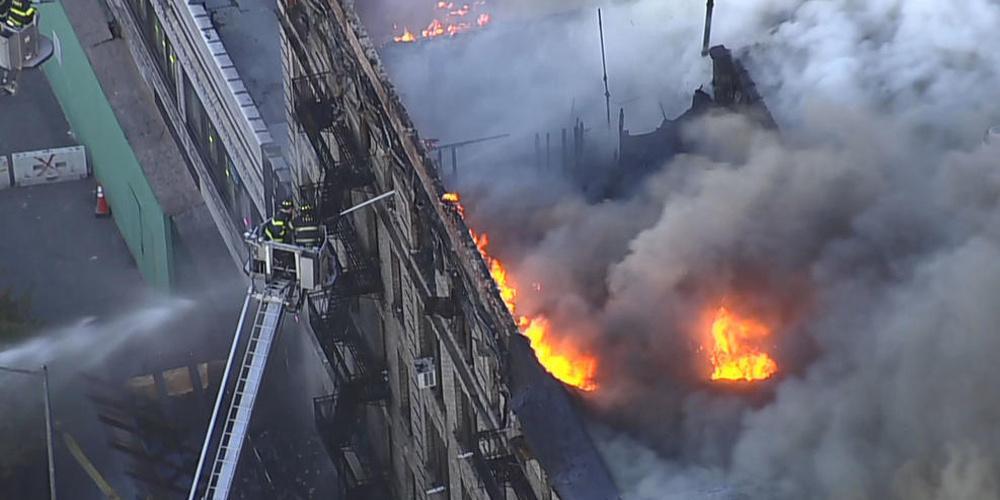 Οι καπνοί από τη μεγάλη πυρκαγιά στην 565 W. 144th Street and Broadway διακρίνονταν σε πολύ μεγάλη απόσταση, ενώ στο σημείο βρίσκονταν δεκάδες οχήματα της Πυροσβεστικής.