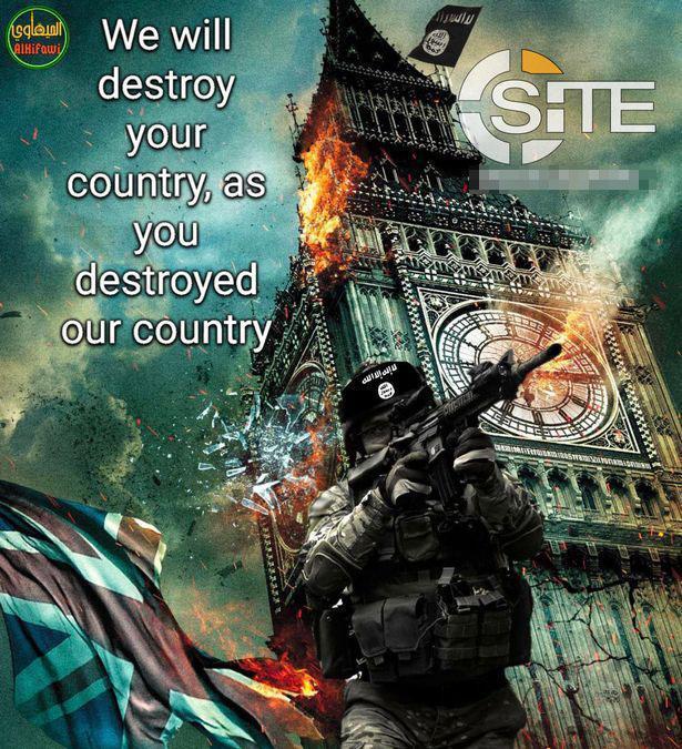 «Σύντομα στις διακοπές σας», είναι το κεντρικό σύνθημα με μία από τις αφίσες να απεικονίζει το διάσημο ρολόι «Βig Ben». «Θέλουμε να καταστρέψουμε τη χώρα σας, καθώς καταστρέφετε τη χώρα μας», είναι ένα από τα απειλητικά μηνύματα των τζιχαντιστών.