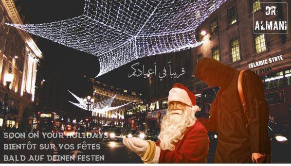 Στις αφίσες που φέρουν την υπογραφή του Ισλαμικού Κράτους, οι τζιχαντιστές καλούν τους «μοναχικούς λύκους» να βάψουν με αίμα τις «γιορτές των Σταυροφόρων».