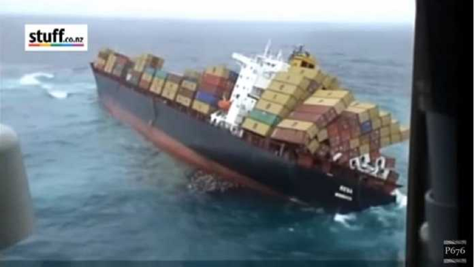 Η κάμερα ενός ελικοπτέρου κατέγραψε την στιγμή όπου το εμπορικό πλοίο ‘Ρένα’ βυθίζεται στα νερά της Νέας Ζηλανδίας.