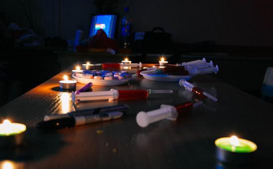 Σε άλλες φωτογραφίες φαίνονται σύριγγες γεμάτες με κάτι που μοιάζει με αίμα διασκορπισμένες πάνω σε ένα γραφείο με αναμμένα κεριά και δεκάδες προφυλακτικά διπλα σε μπουκάλια βότκας που δεν θα μπορούσαν να λείπουν από την… ατμόσφαιρα του πάρτι