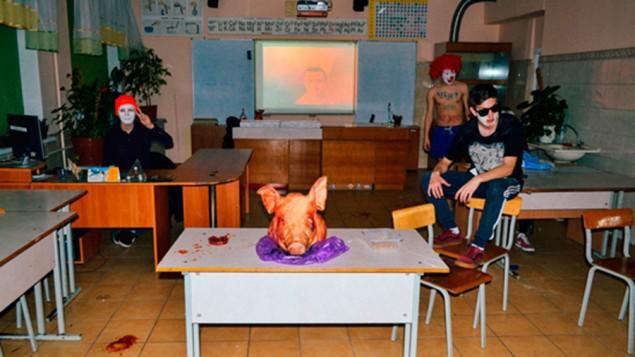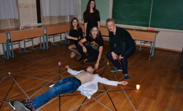 «Πρωταγωνιστές» στο πάρτι του σχολείου που βρίσκεται στο Καλίνινγκραντ ήταν μία γουρουνοκεφαλή, σύριγγες γεμάτες με αίμα και μία πεντάλφα, ενώ σύμφωνα με το Russia Today, είχε λάβει την έγκριση τις διοίκησης.