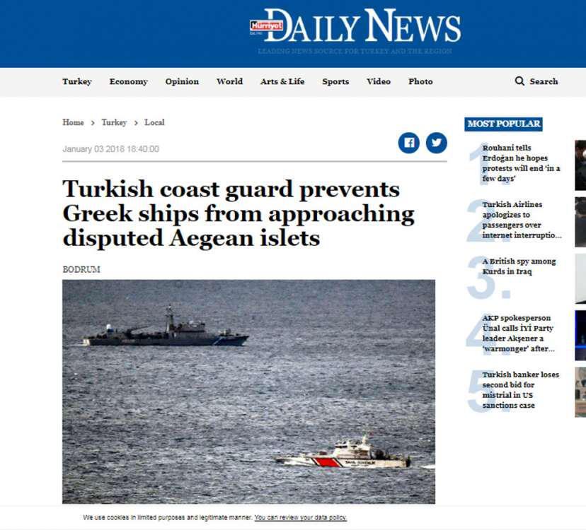 Ακόμα ένα επεισόδιο σημειώθηκε στα Ίμια σήμερα Τετάρτη (03.01.2017), σύμφωνα με τα ΜΜΕ της γειτονικής χώρας.