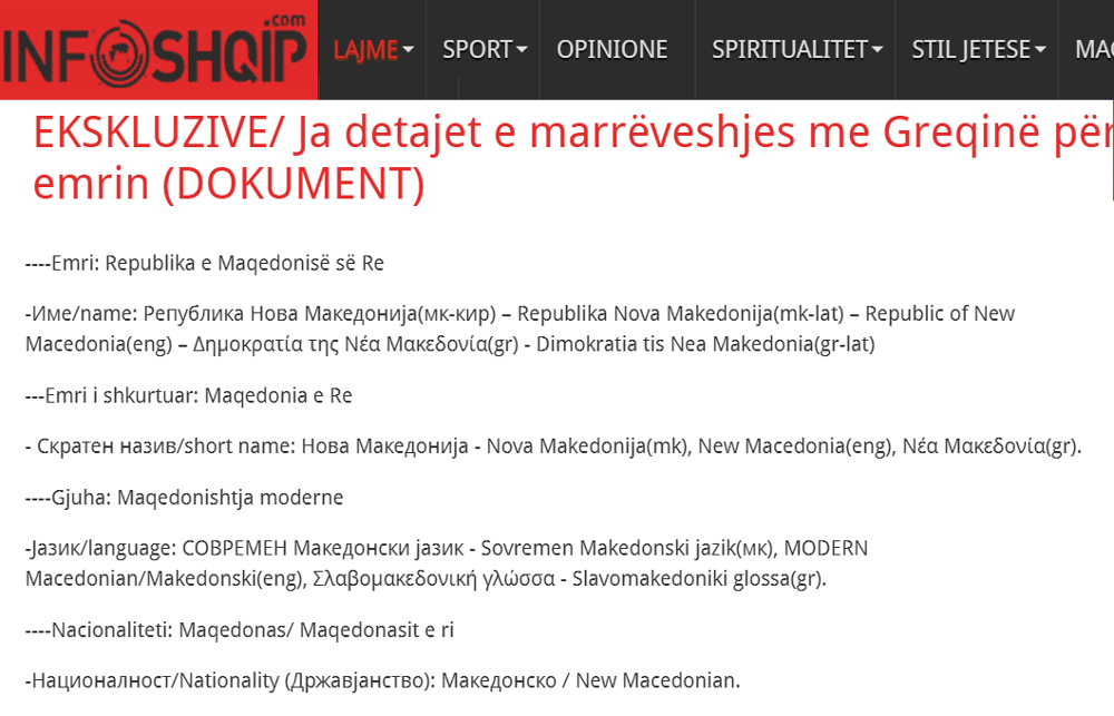 Το δημοσίευμα του ‘InfoShqip.com’ αναφέρει ότι το έγγραφο δεν είναι επίσημο και ότι ελήφθη από ελληνικές πηγές.