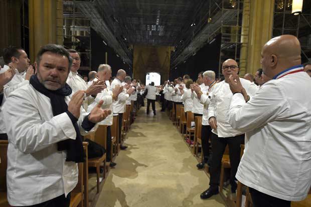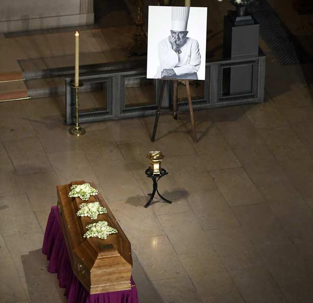 Η εκκλησία στην οποία πραγματοποιούνται εργασίες, χώρεσε μόνο 1.100 ανθρώπους: ανάμεσά τους ήταν η αφρόκρεμα της γαστρονομίας, οι σεφ Αλέν Ντουκάς, τον οποίο ο θανών θεωρούσε πνευματικό του παιδί, ο Ζοέλ Ρομπουσόν, η Αν-Σοφί Πικ, ο Ντανιέλ Μπουλύντ που έφθασε από τη Νέα Υόρκη και ο Χιρογιούκι Χιραμάτσου, ο επικεφαλής της αλυσίδας μπυραριών Bocuse στην Ιαπωνία.