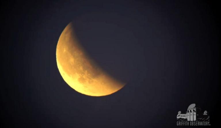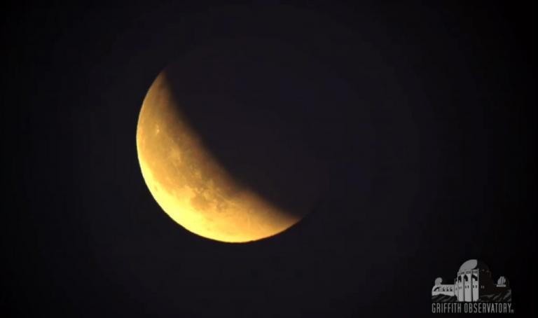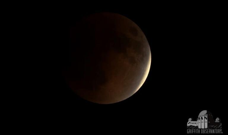 Η έκλειψη ξεκίνησε περίπου 15 λεπτά αργότερα. Μια μαύρη σκιά άρχισε να καλύπτει τη λευκή υπέρ-Σελήνη. Τις συγκλονιστικές εικόνες κατέγραψαν οι κάμερες του αστεροσκοπείου Γκρίφιθ του Λος Άντζελες.