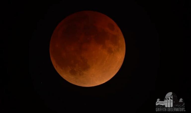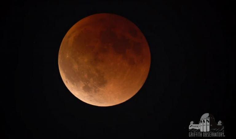 Χιλιάδες άνθρωποι συγκεντρώθηκαν στην Καλιφόρνια για να δουν τη Σελήνη να χάνεται… Κρυμμένη από τη σκιά της Γης και μετά να επανεμφανίζεται κατακόκκινη! Εξ ου και η ονομασία ματωμένο φεγγάρι.