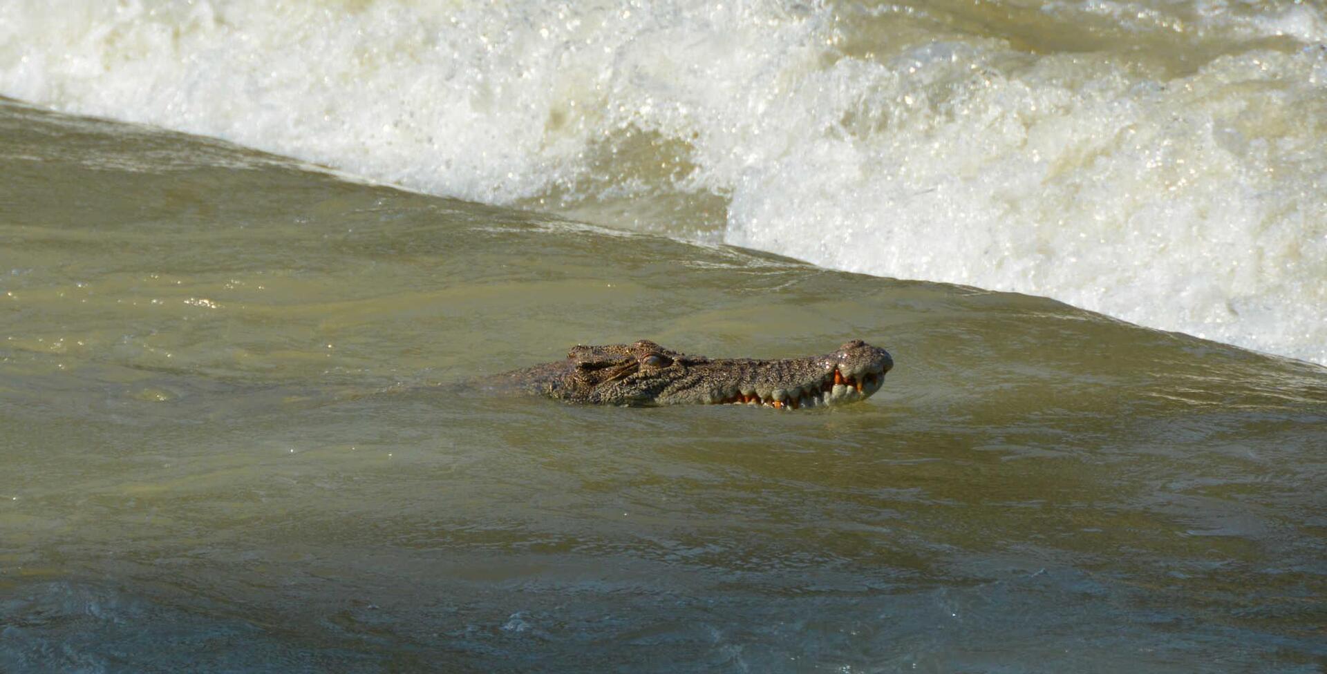 Το ερπετό, μήκους τριών μέτρων, δεν είχε όπως φάνηκε, καμία διάθεση να επιτεθεί κι έτσι προχωρούσε αργά ανάμεσα στις ξαπλώστρες των τουριστών ενώ το προσωπικό του beach bar κάλεσε όσους ήταν μέσα στην θάλασσα να βγουν έξω, όταν είδαν ότι ο κροκόδειλος κατευθυνόταν προς το νερό.