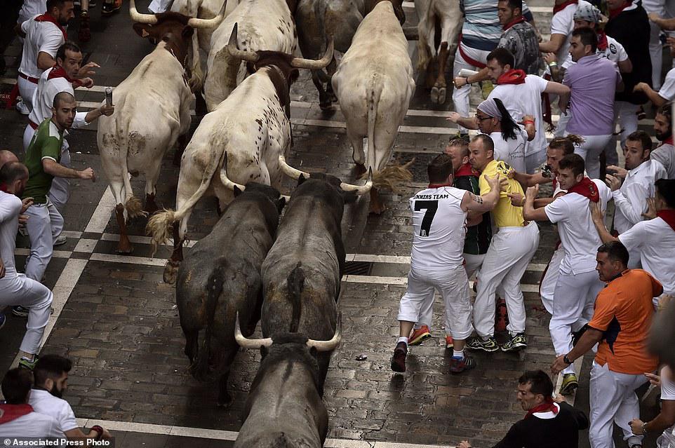 Επιπλέον στους σημερινούς αγώνες ένας 33χρονος Γιαπωνέζος τραυματίστηκε από τα κέρατα ενός ζώου στο στήθος και ένας 24χρονος Ισπανός στο μπράτσο, ενώ άλλοι 12 άνθρωποι τραυματίστηκαν ελαφρά, επισήμανε η τοπική κυβέρνηση στον ιστότοπό της.