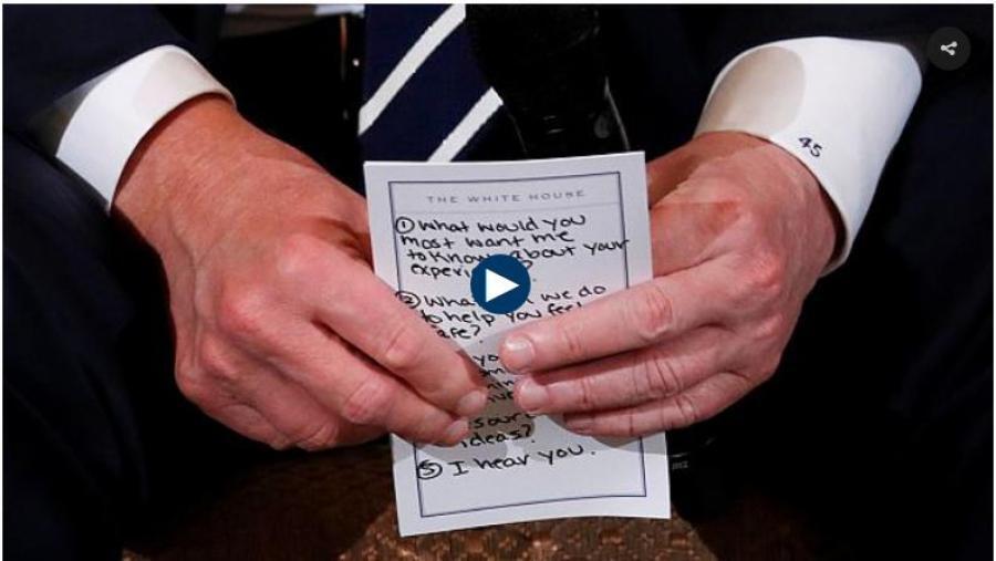 Ο Τραμπ έκανε το σχόλιο αυτό κατά τη διάρκεια μιας ωριαίας, συγκινησιακά φορτισμένης συνάντησης με μαθητές που σώθηκαν όταν διαπράχθηκε η σφαγή στο λύκειο Μάρτζορι Στόουνμαν Ντάγκλας και γονείς παιδιών που σκοτώθηκαν.