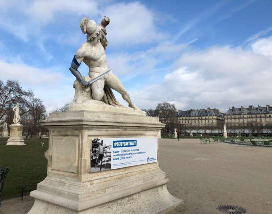 Η Μη Κυβερνητική Οργάνωση Handicap International εξόπλισε πολλά αγάλματα στο Παρίσι με προσθετικά μέλη 3D εκτύπωσης για να «προσελκύσει την προσοχή και να ευαισθητοποιήσει το μεγάλο κοινό» για τους περίπου 100 εκατομμύρια συνανθρώπους μας που χρειάζονται ορθοπεδικές συσκευές και προϊόντα σε όλο τον κόσμο.