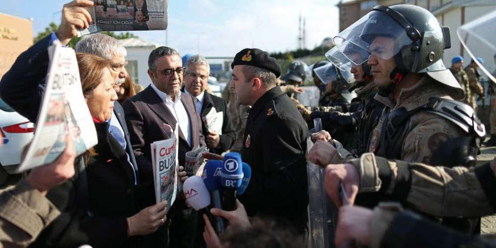 «Να βάλουμε τέλος σ’ αυτή την καταπίεση», είναι ο σημερινός τίτλος της Cumhuriyet, οι συνεργάτες της οποίας κατηγορούνται για «τρομοκρατικές δραστηριότητες» σ’ αυτή την υπόθεση που αποκρυσταλλώνει τις ανησυχίες για την ελευθερία του Τύπου υπό την προεδρία του Ερντογάν.