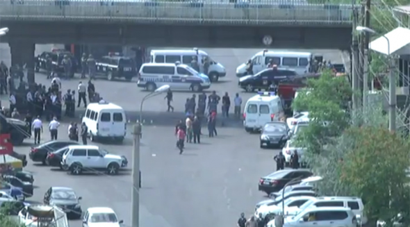 Τεθωρακισμένα οχήματα της αρμένικης αστυνομίας και στρατιωτικές δυνάμεις αστυνομικές δυνάμεις έχουν αποκλείσει την περιοχή γύρω από το Αρχηγείο της αστυνομίας στο Ερεβάν.