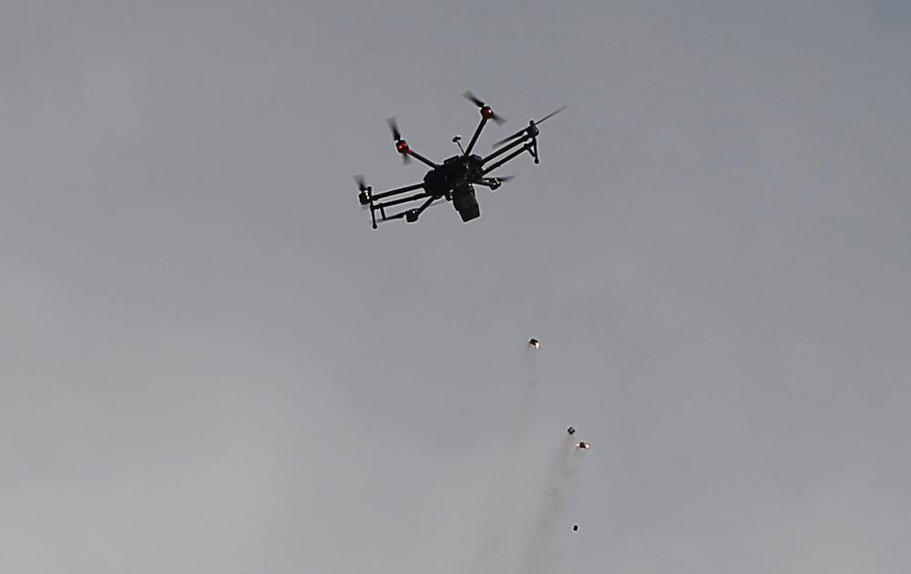 Φωτογραφίες από τη Γάζα δείχνουν επίσης μη επανδρωμένα, τηλεχειριζόμενα αεροσκάφη να εκτοξεύσουν δακρυγόνα στο πλήθος.