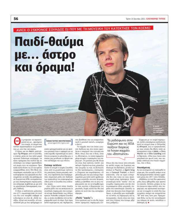 Διαβάστε την συνέντευξη του Avicii στον Ελεύθερο Τύπο: