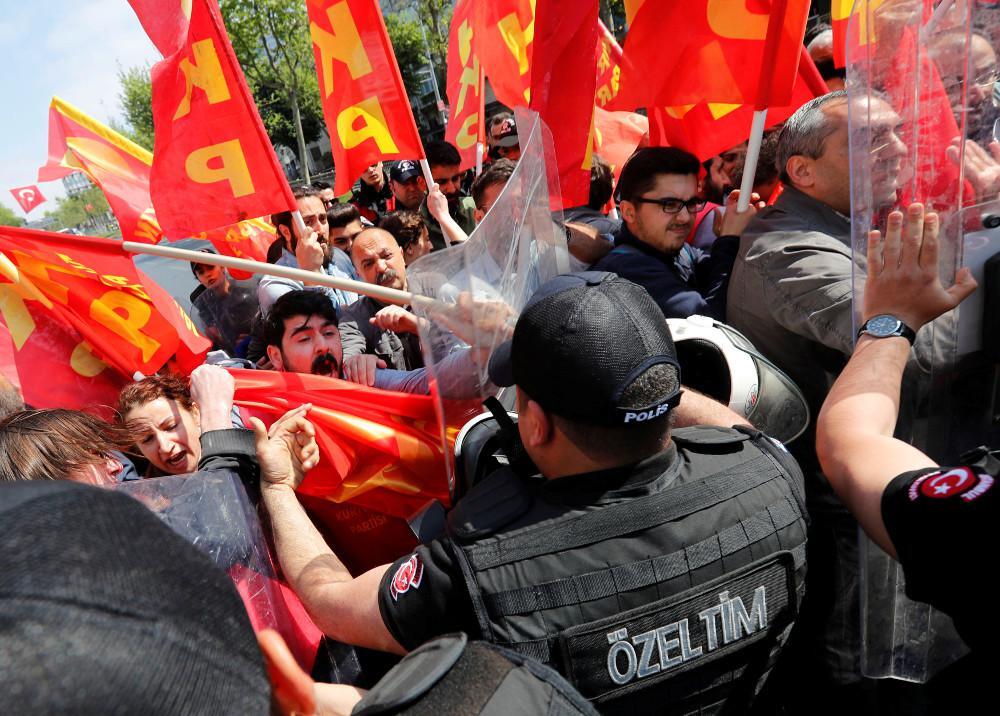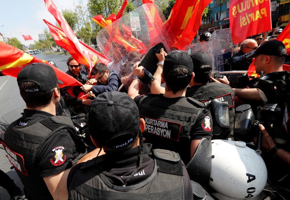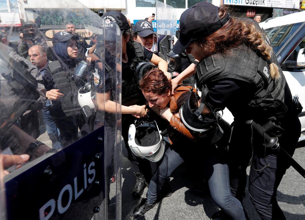 Διαδηλωτές που επιχείρησαν να διασπάσουν τον αστυνομικό κλοιό, που είχε σχηματιστεί γύρω από την πλατεία Ταξίμ, απωθήθηκαν βίαια, ενώ αρκετοί συνελήφθησαν.