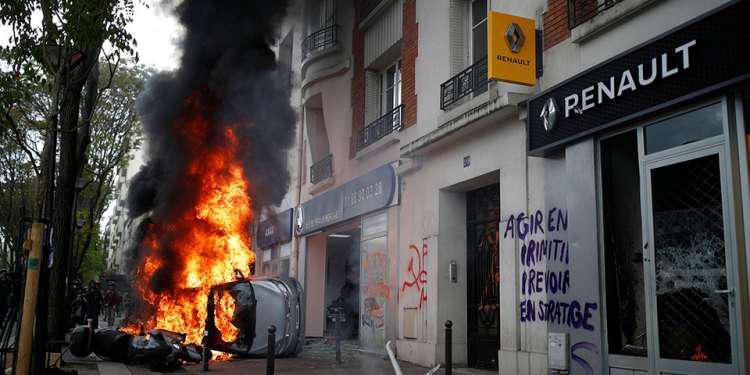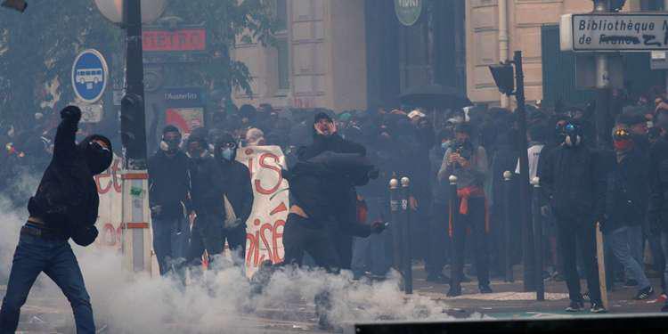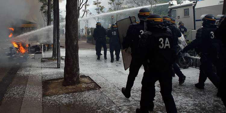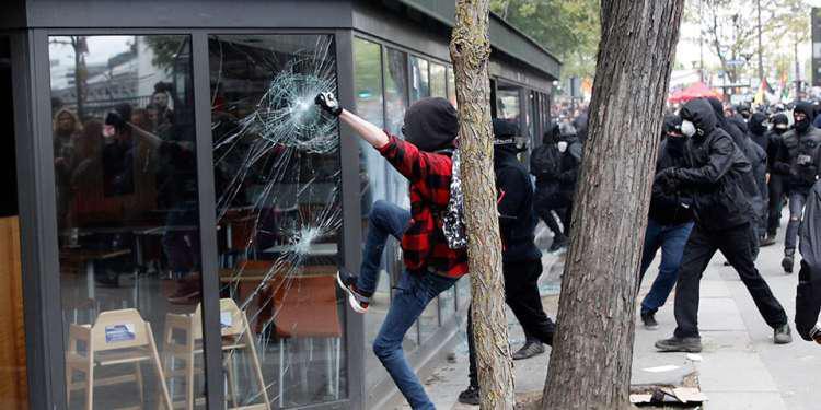 Καθώς επεισόδια αμαύρωσαν την πορεία, με τους διαδηλωτές να προκαλούν καταστροφές σε ένα εστιατόριο, να σπάνε βιτρίνες και να εκτοξεύουν βόμβες μολότοφ, η διαδήλωση στο Παρίσι συνεχίστηκε μετά δυσκολίας. Η αστυνομία μάλιστα ζήτησε από τους διοργανωτές να αλλάξουν τη διαδρομή τους.